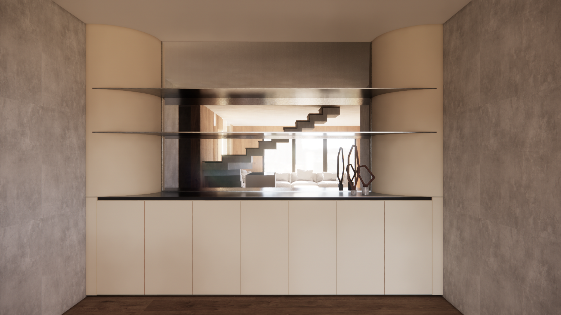 beige modern console very nice rich inox shelves 30 black mirror