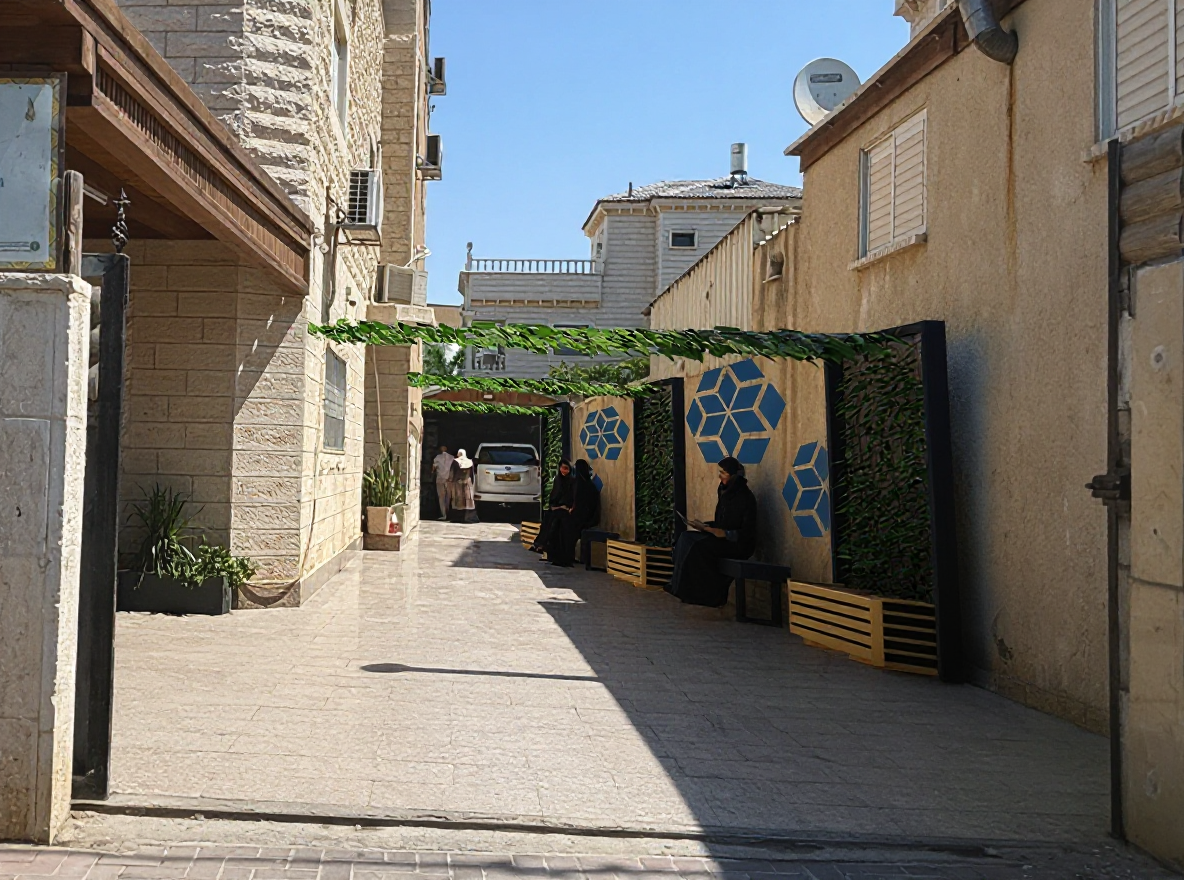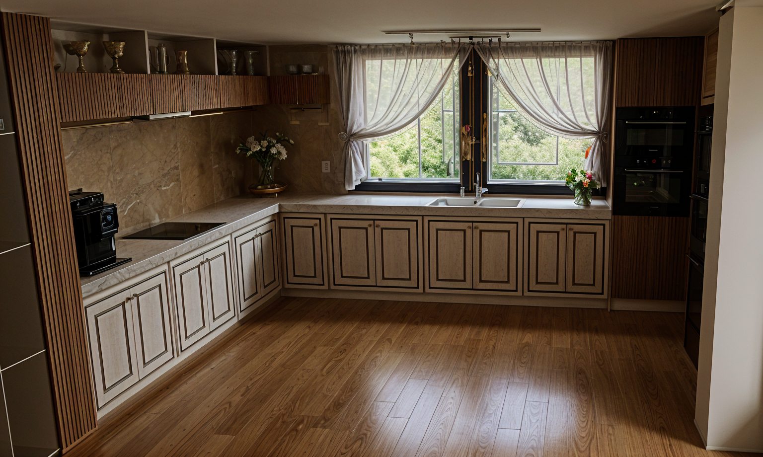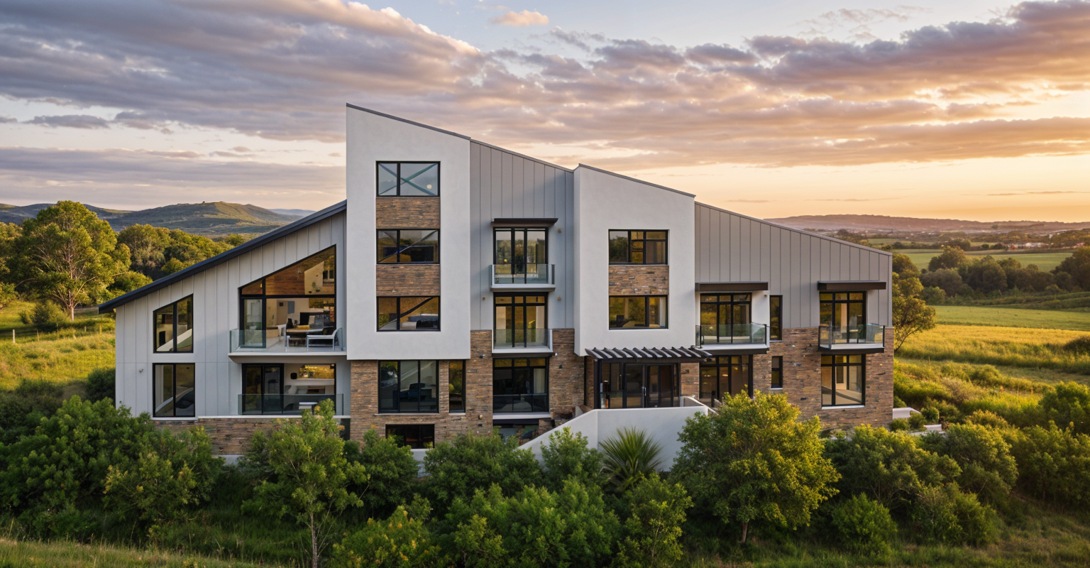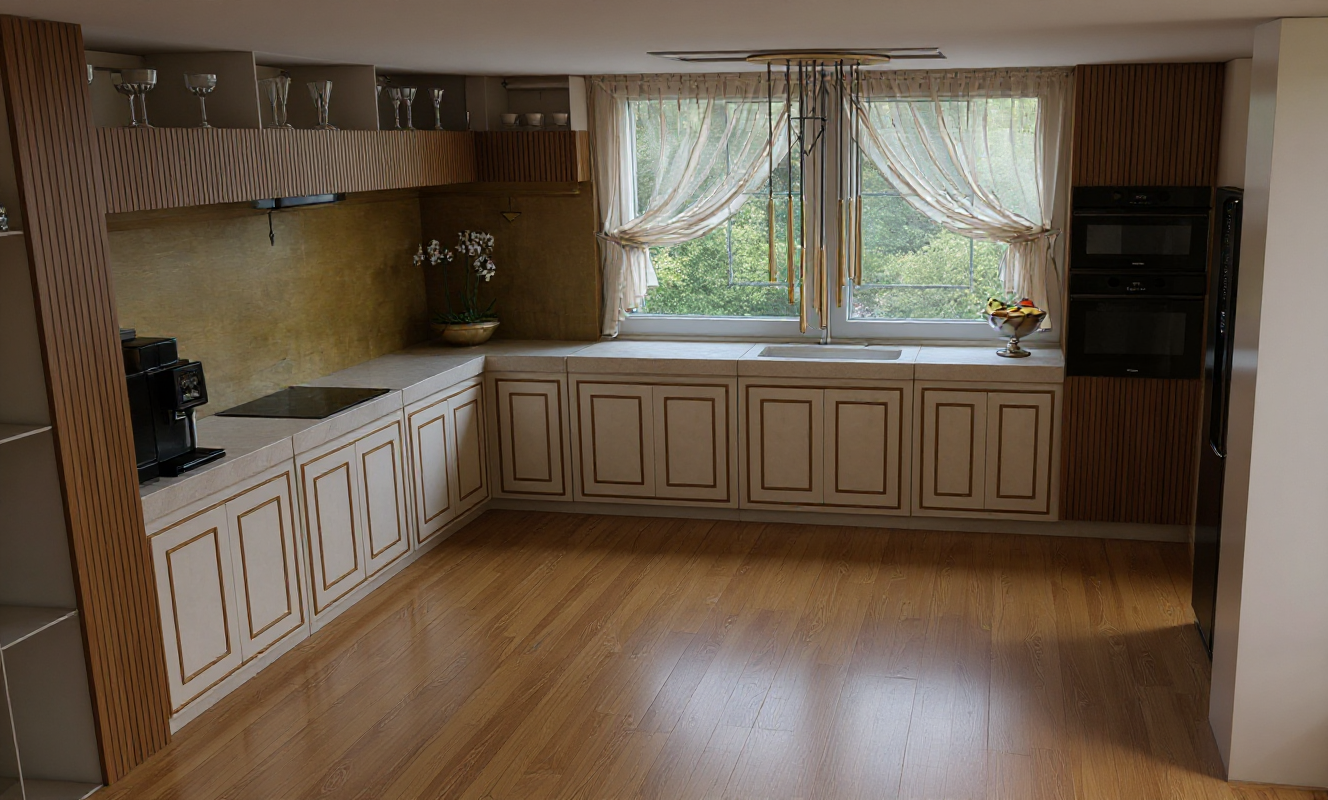 add weather trees and grass to white ground make grey driveway paving make cream brick a buff cream stone