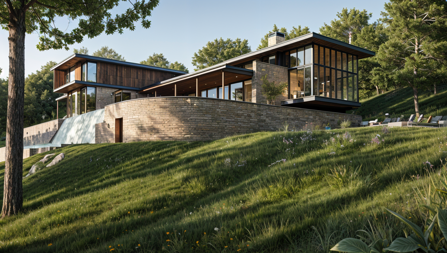 edit stone to have more variation of grey and earth tones roof to be darker grey cedar shiingles black gutters and downspouts