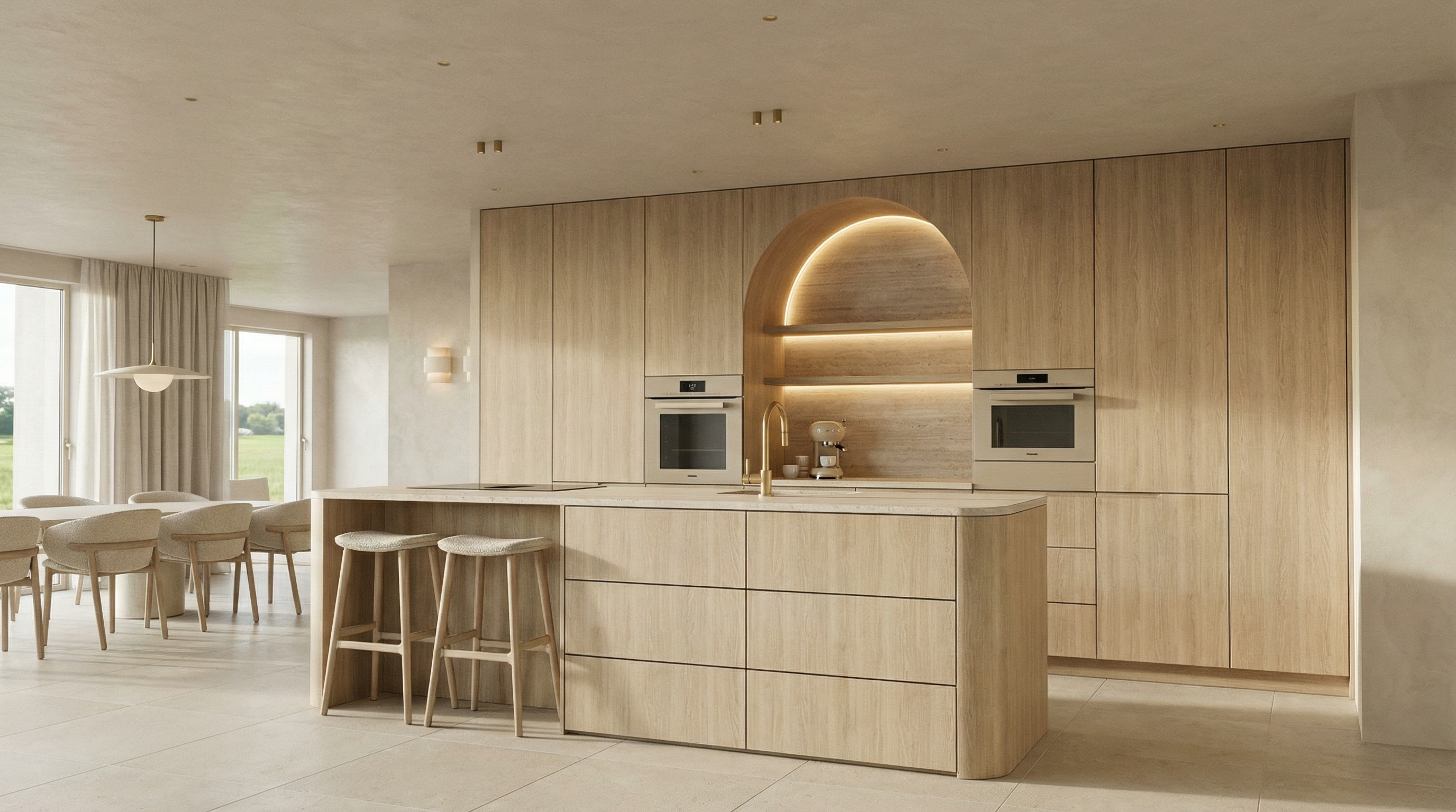 make it summer afternoon in japan outside the window close the curtains but make them translucent turn on the two hanging lights on both sides of the bed add the same upholstery texture that is around the bed on the white square on the wall behind the bed