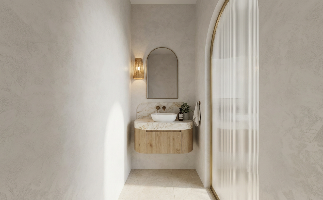 antique brass tapware taj mahal stone light micro cement wall on door and window wall rattan woven wall sconce white frame door