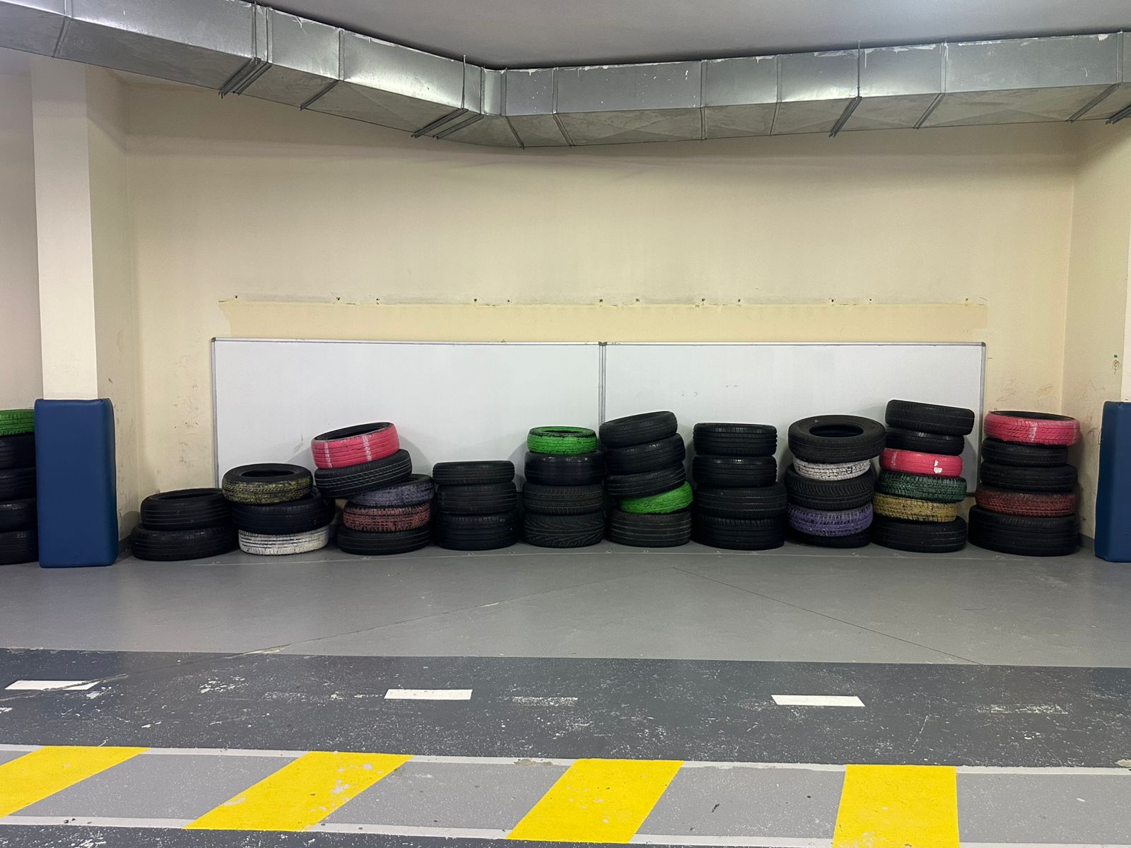 in this area i want to add 3 houses for kjids to play each themed as vet and cafeteria and house remoce the wheels in the picture and add these three themed playhouses with colors that fits each the me and sizes for kids to enter and play inside