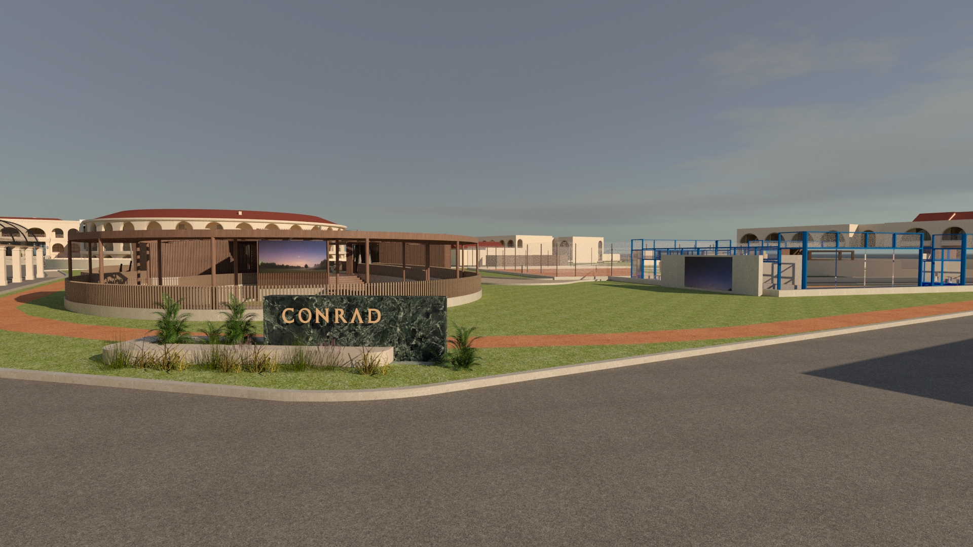 hyper realistic render hotel add mediteranean trees and plants