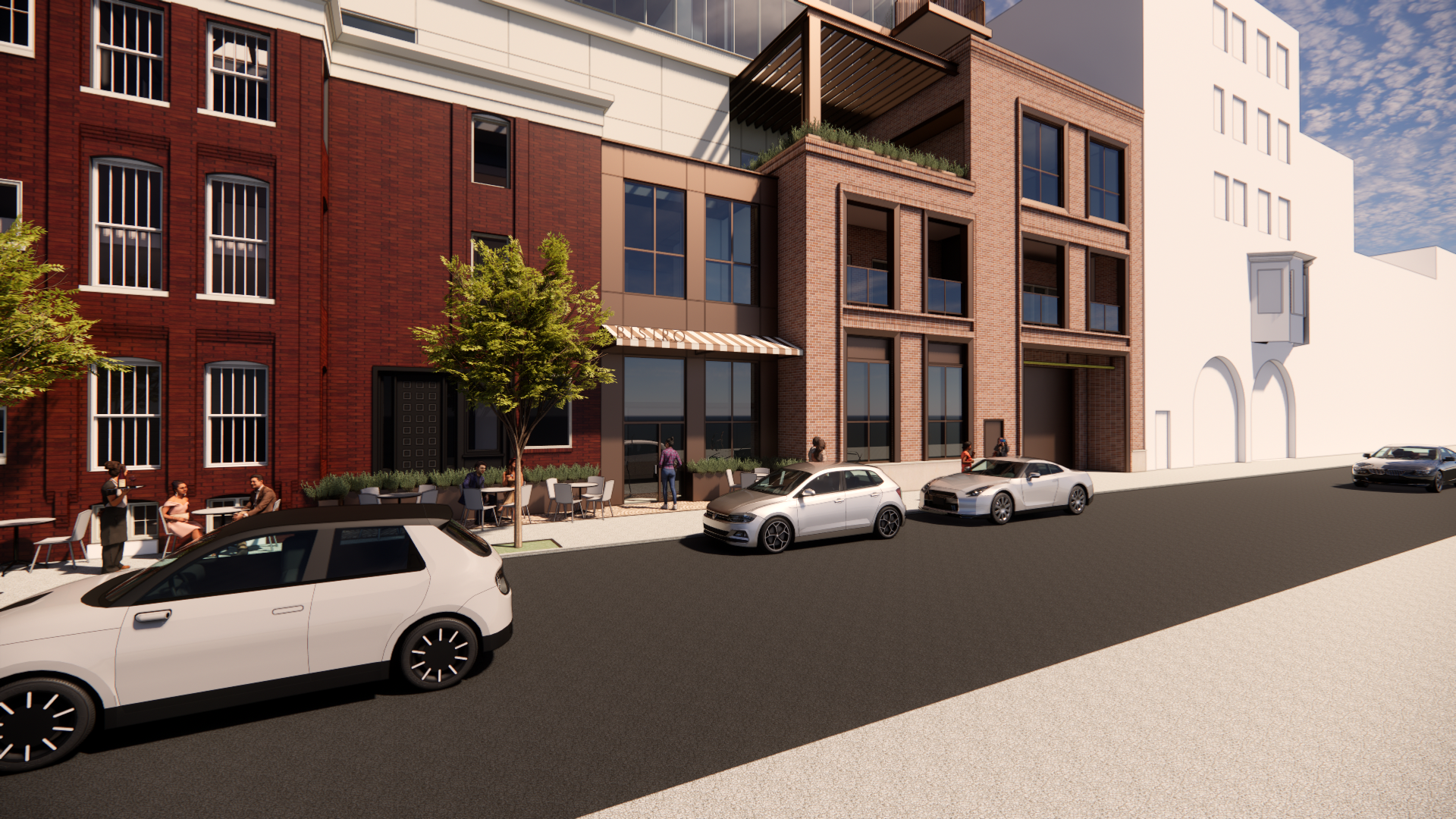 photoreal architectural rendering of the provided model strictly preserving all original materials colors textures geometry and lighting setup apply a conceptual architectural presentation style by overlaying subtle hand drawn sketch lines construction annotations and diagrammatic markings on top of the image without modifying the underlying design maintain true to model material fidelity no changes to facade finishes glazing color interior materials or surface tones lighting keep original lighting conditions and color temperatures exactly as defined in the scene do not introduce new lighting moods overlay style fine black grey ink lines soft pencil strokes light technical drafting marks handwritten notes scaled annotations all semi transparent and non destructive composition retain original camera angle framing and perspective post processing subtle blend of photoreal render and architectural sketch light grain soft contrast no color grading shifts atmosphere professional architecture competition board aesthetic clean and restrained