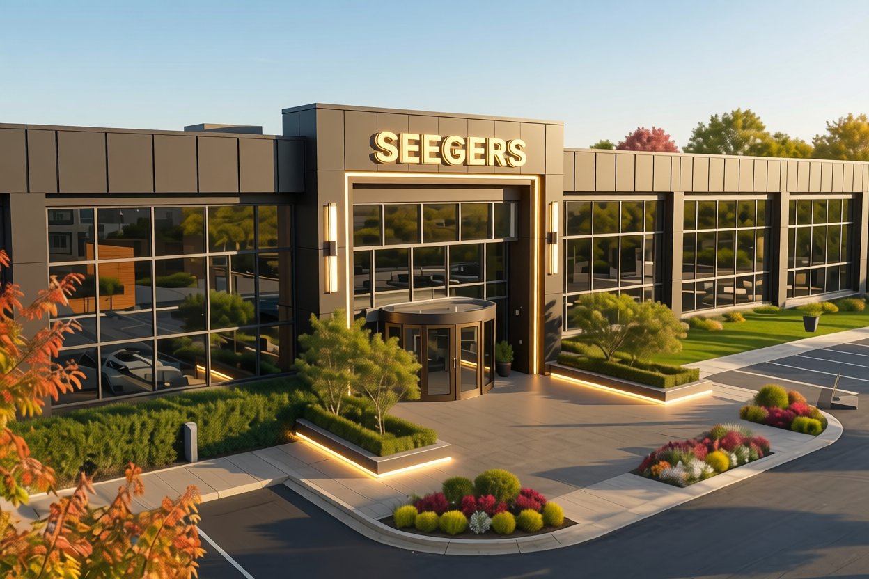 add a modern glass cantilever flat canopy above entry make revolving doors are bit smaller