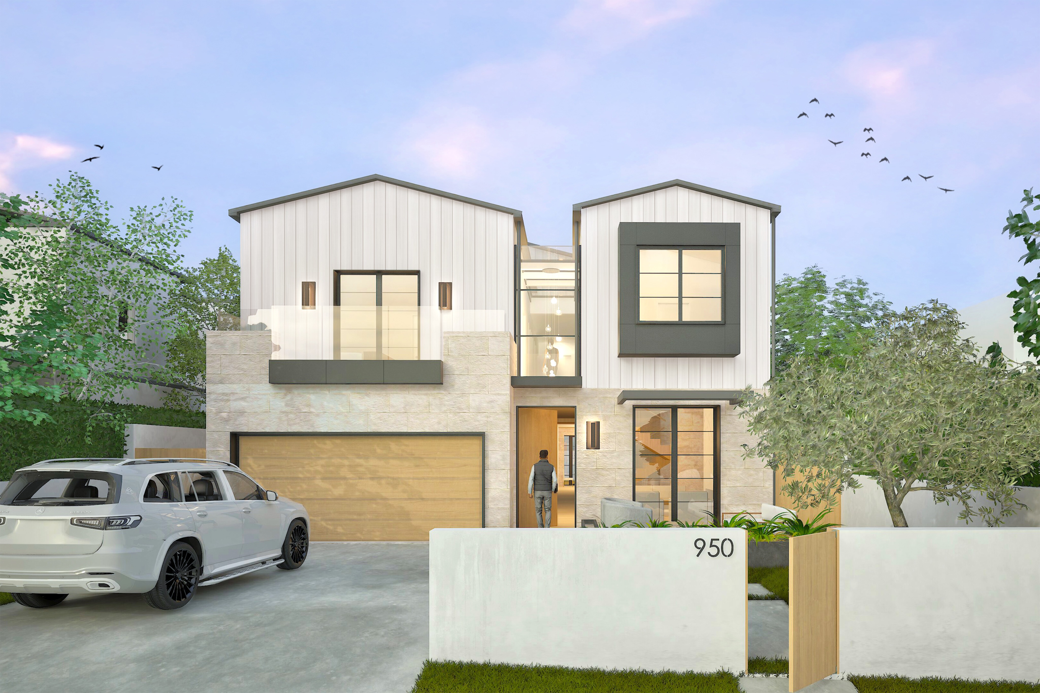 do not change architecture at all not even a little bit light beige wood siding with clear vertical grain light beige stone base clear sunny sky do not change architecture