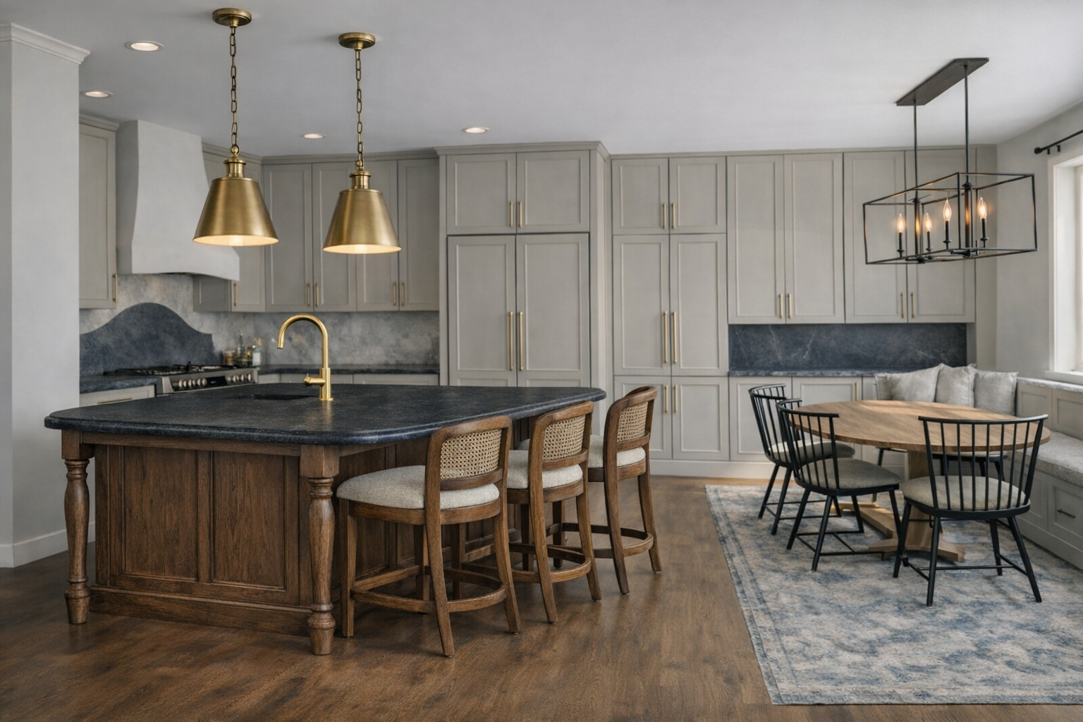 change the island to be much smaller and better scale for the kitchen have it be more a furniture style island