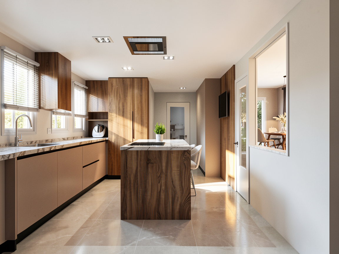 crea una imagen fotorealista a partir de esta de sketchup l la parte de atras de la zona de caja son unas estanterias no ventanas