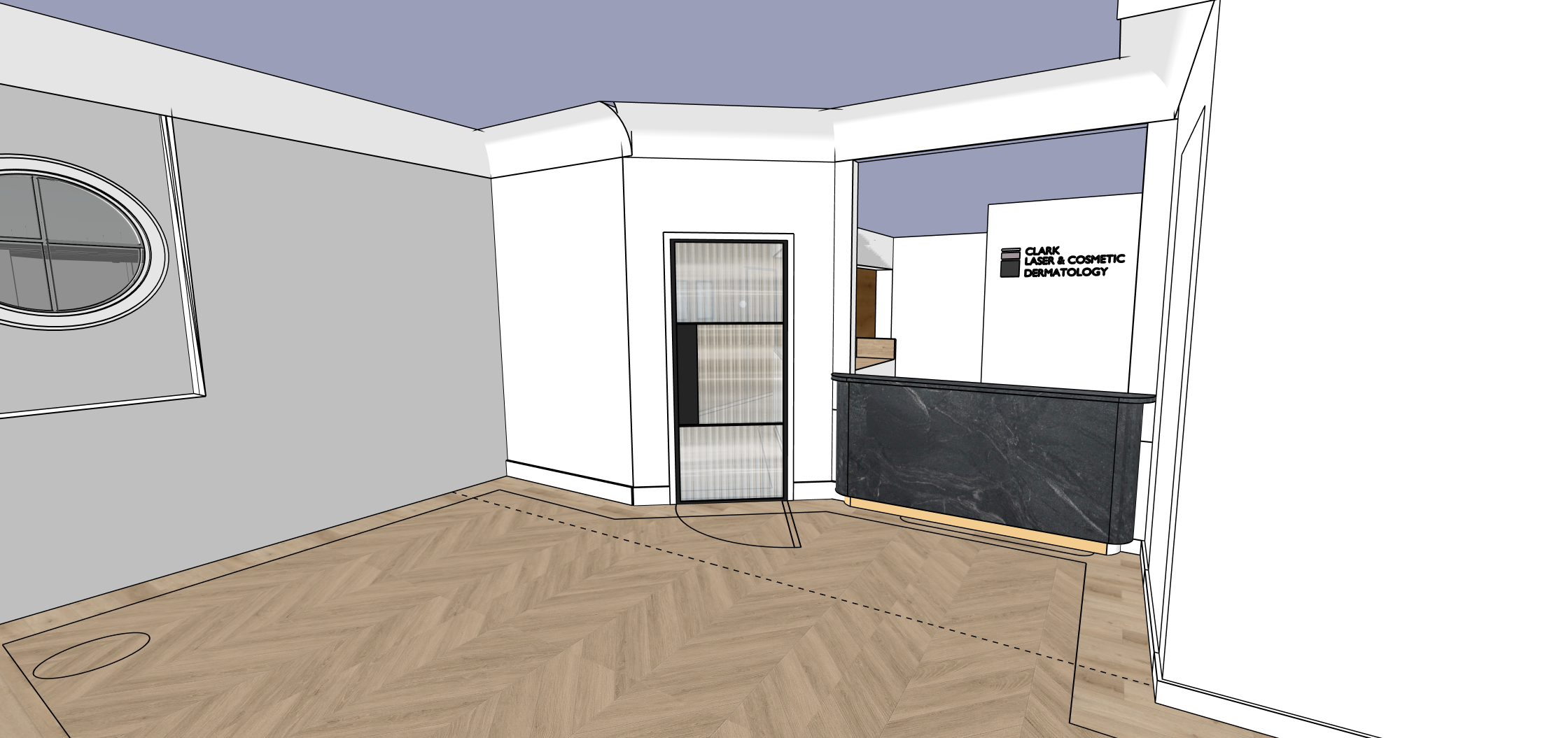 warm and welcoming deramtologist reception and waiting room walls and ceiling to be warm white paint
