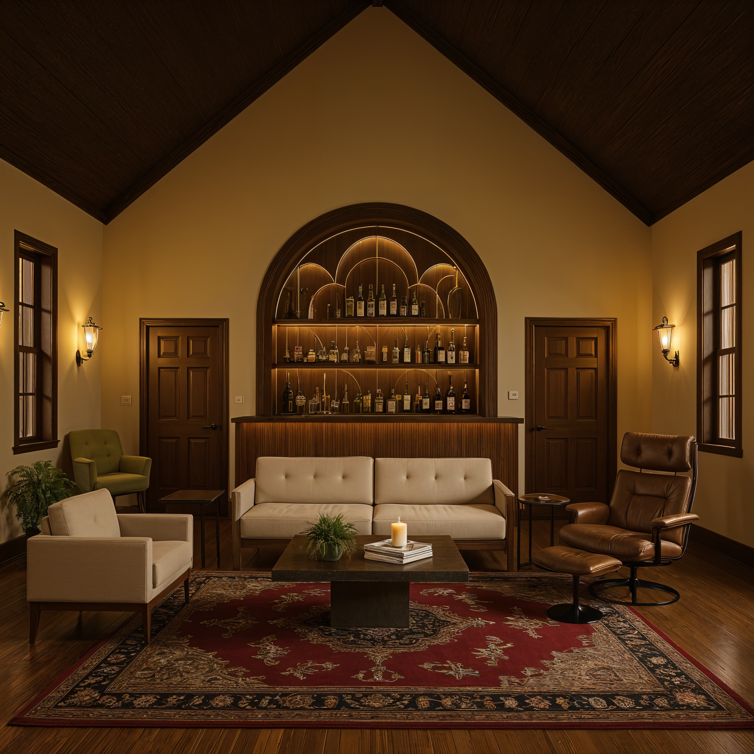 interior shot organic modern interior with warm lighting and art deco details plaster walls neutral color palette architecture