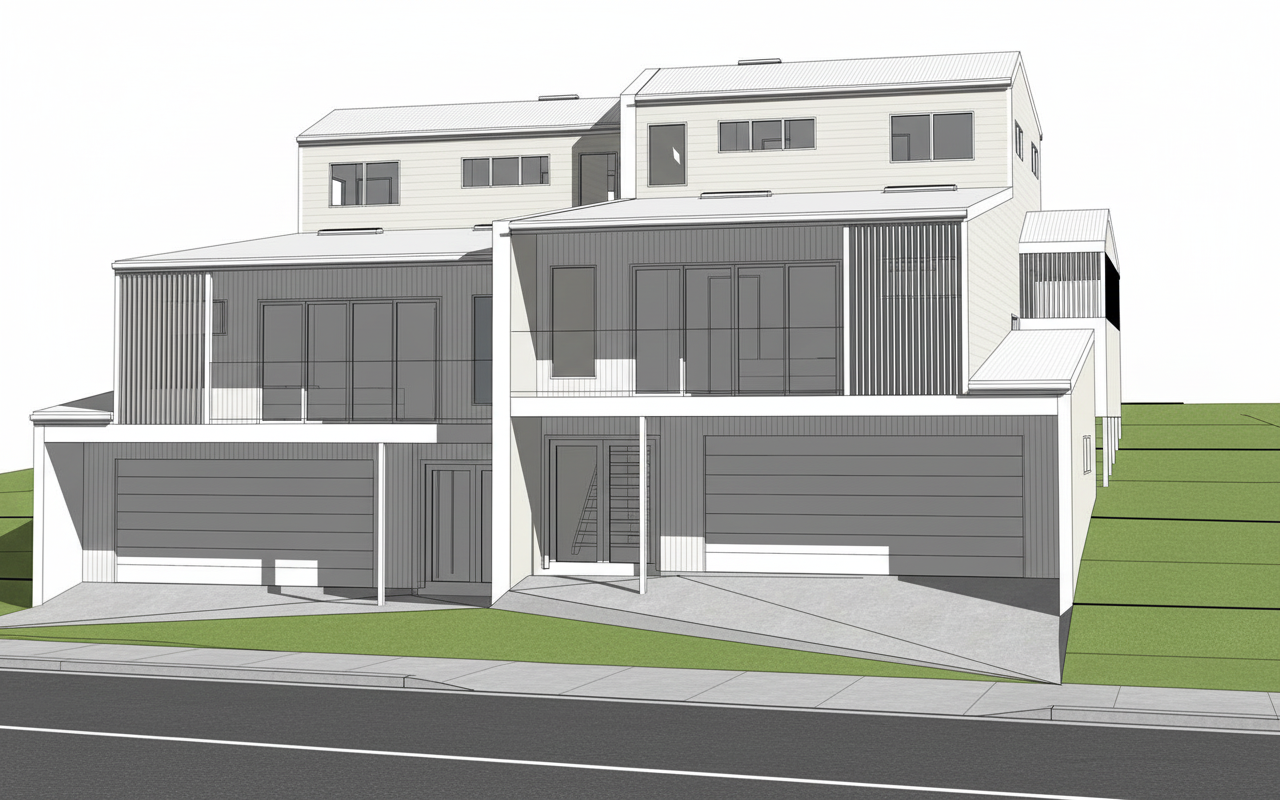 gray stucco building with stone below happy peaceful green lawn and soft blue sky in oklahoma improve the image and add details better furniture and families using the spaces some minimal native oklahoma ranch landscaping improve brightness inside building