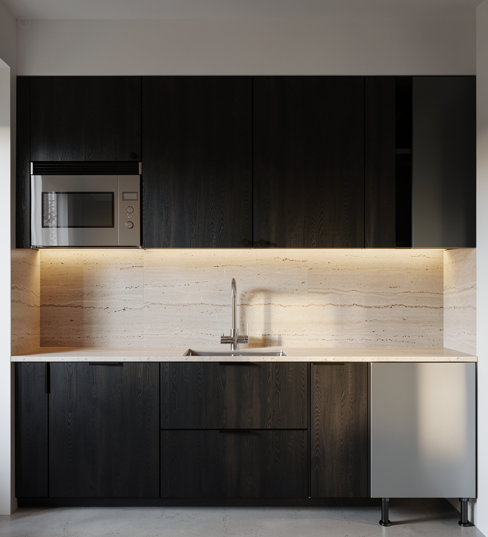 main prompt this is a cycladic house in kythnos the floor is natural gray pelion stone the sofa is white cement paint the sofa fabrics are light cream there is wooden stair leading to the mezzanine which is made of metal in white color and light oak wood the drawer underneath the sofa is white there is natural light negative prompt do not change geometry do not add pbjects do no change colors or materials