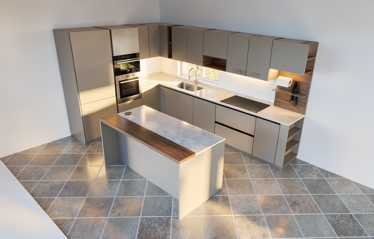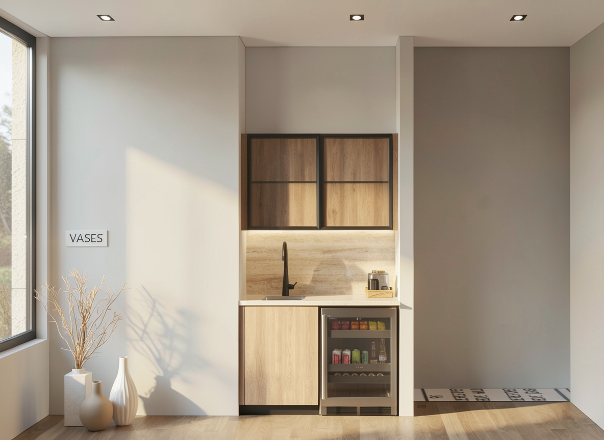 mantieni colori arredi soffitto in cemento grigio chiaro strip led sotto i pensili cucina solo un anta armadio con specchio arreda la stanza come uno studente universitario mantieni tubo rosso sprinkler a soffitto