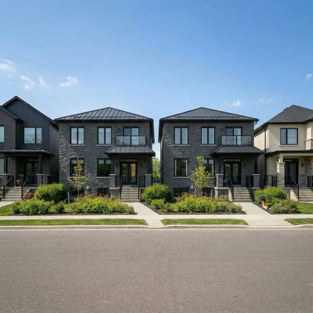 add two entry doors in each of the houses in the center