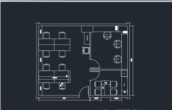 this is a top view office layout to be converted into realistic render with light grey color furniture and chairs and black carpet floor