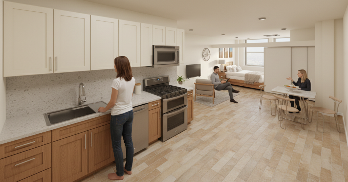 make photorealistic kitchen scene for builder brochure add upscale decor