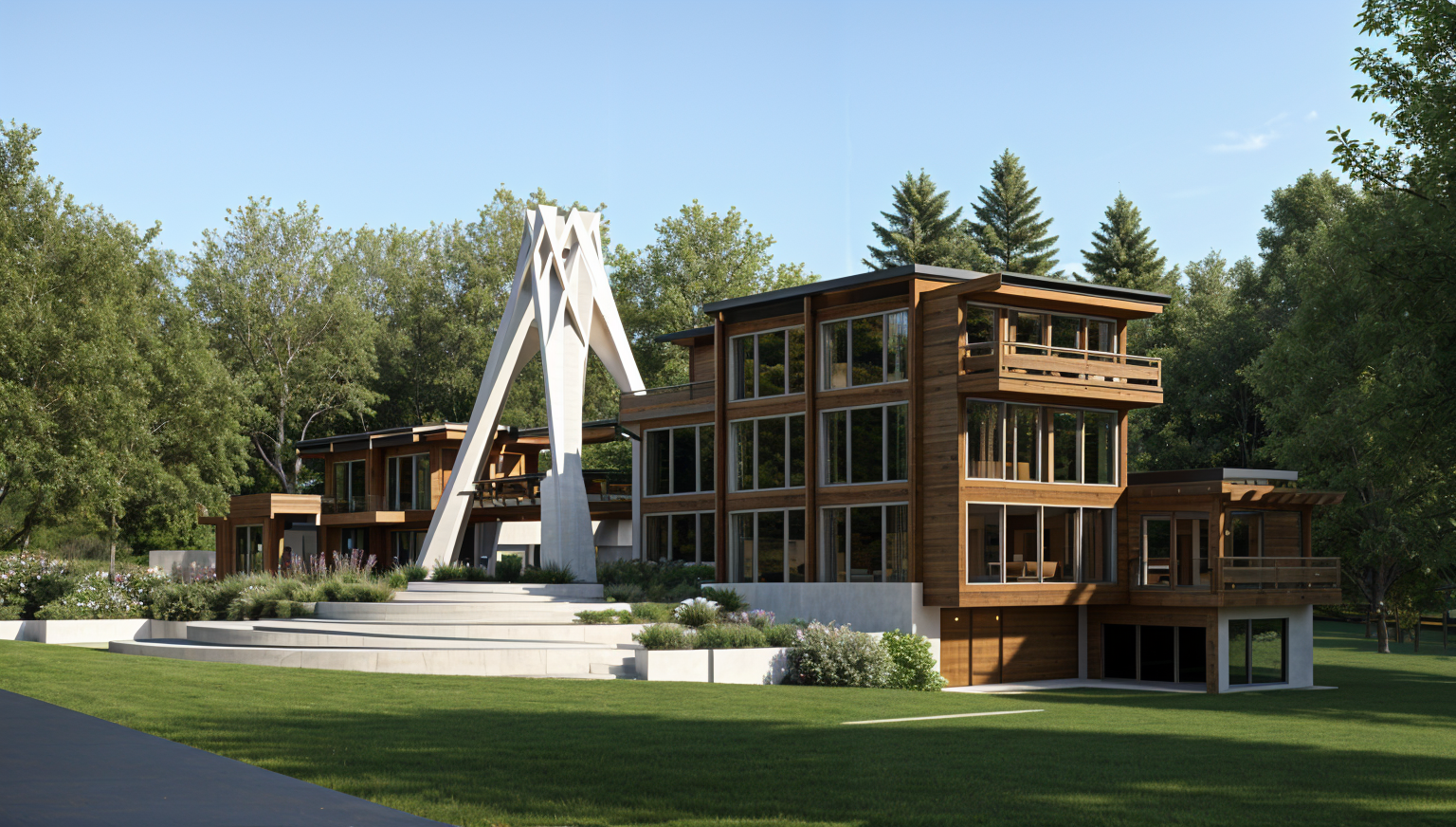 make this outdoor kitchen under an aluminum pergola a real photo in a furniture store showroom