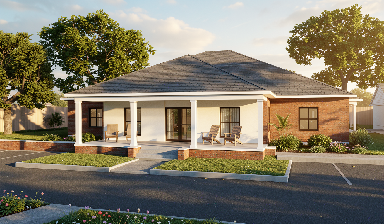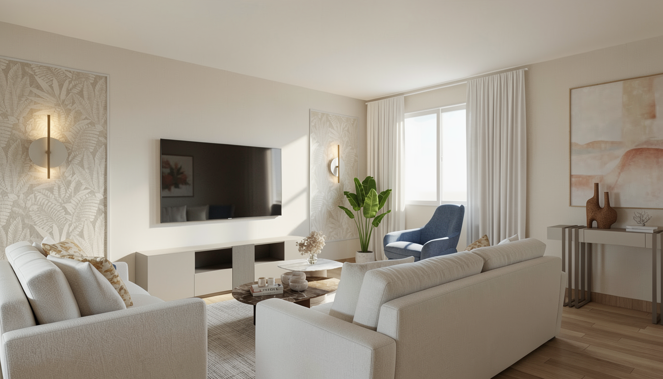 enhance this rendering with photorealistic quality improve light add realistic textures and sharpen details strictly preserve original architecture layout colors and materials do not add new structures or change the design reduce sunlight