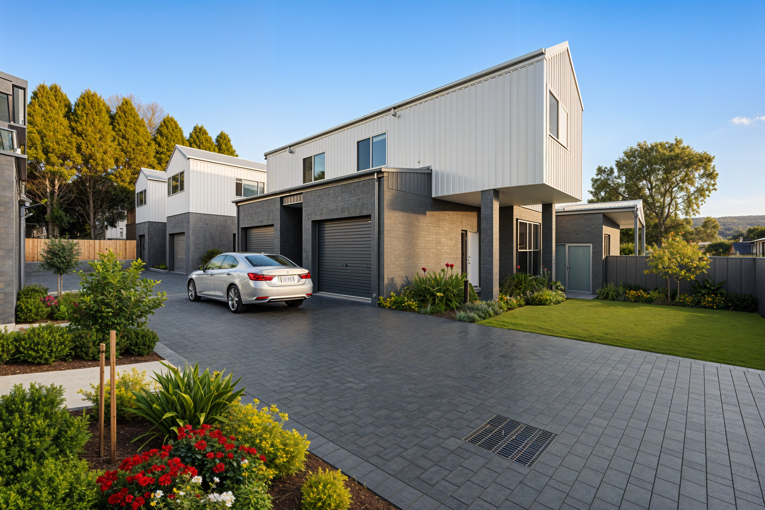 keep the driveway as is just better landscaping no flowers please