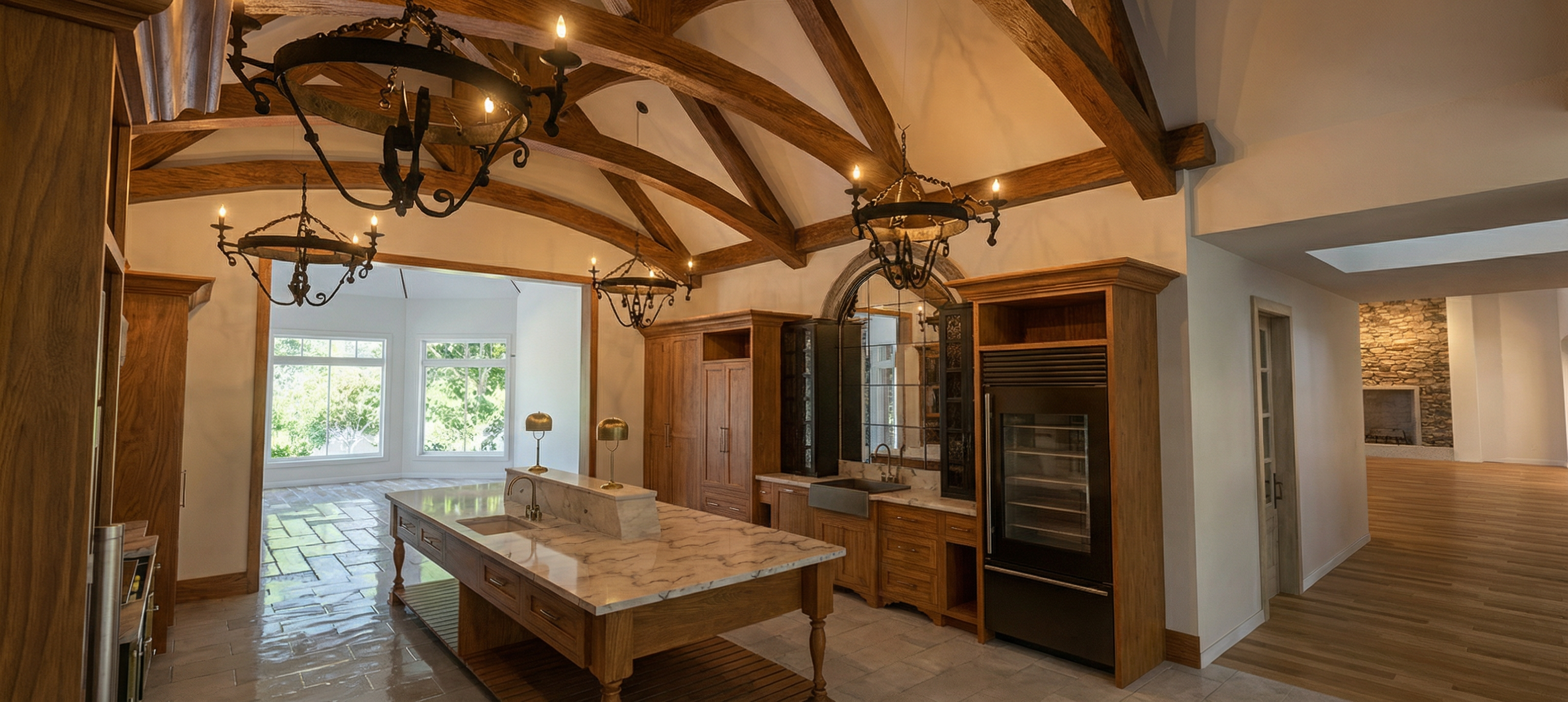 make look photo realistic with trees and a sky in the background
