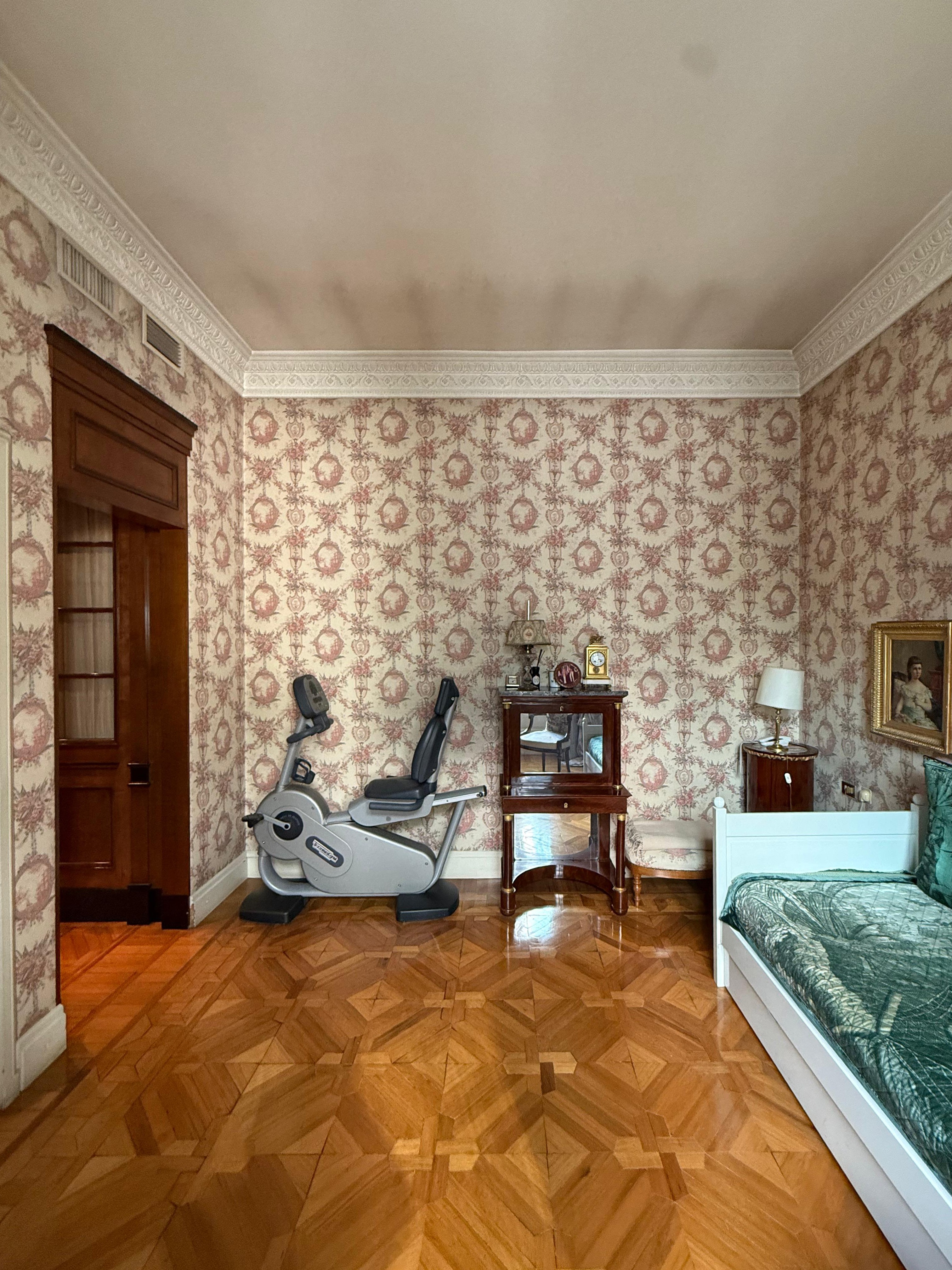 devo svuotare la stanza rimuovere la carta a parete e sostituirla con un grassell di calce sui toni del beige grigiastro e mettere delle boiserie a tutte altezza con cornice doppia ad ofset ad esempio sulla parete frontale vorrrei fare 3 rettanogoli due laterali pi larghi e quello centrale pi sottile
