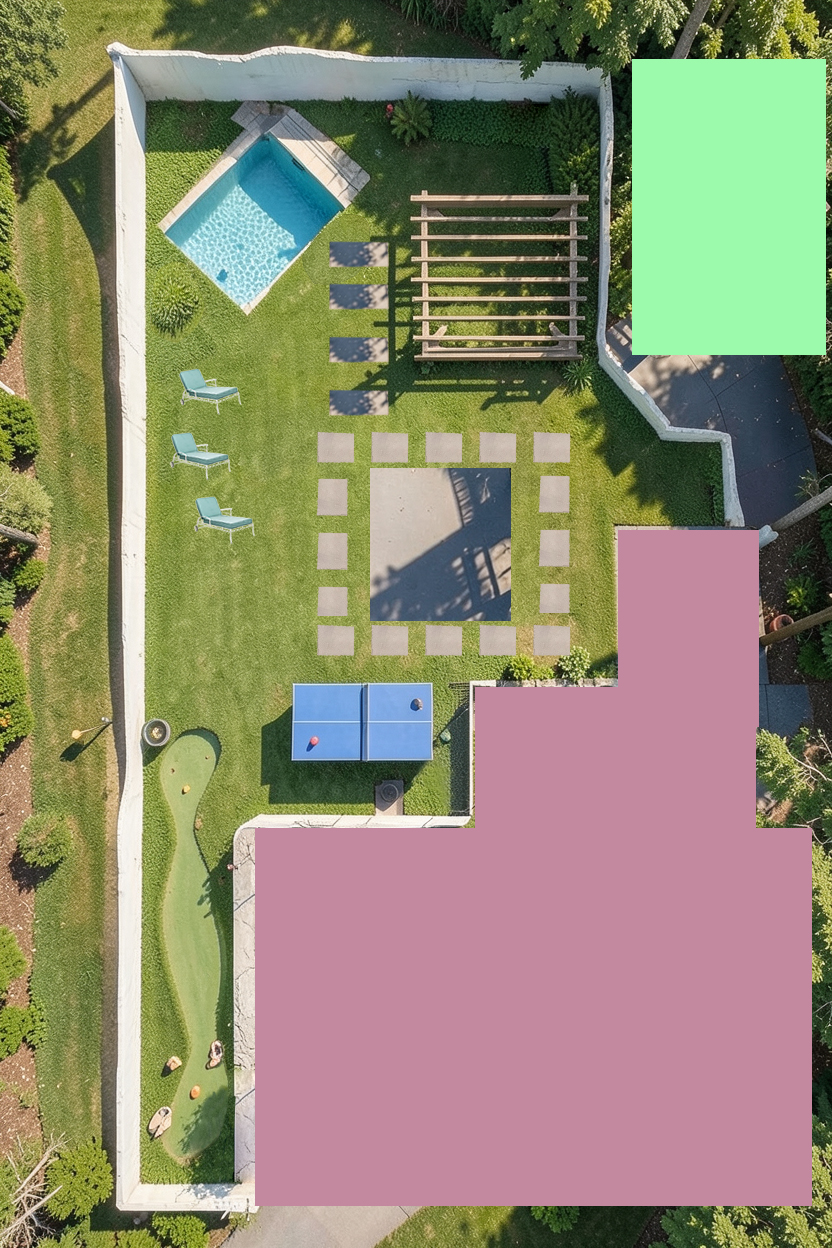 above ground pool pergola golf putt putt ping pong table keep same layout