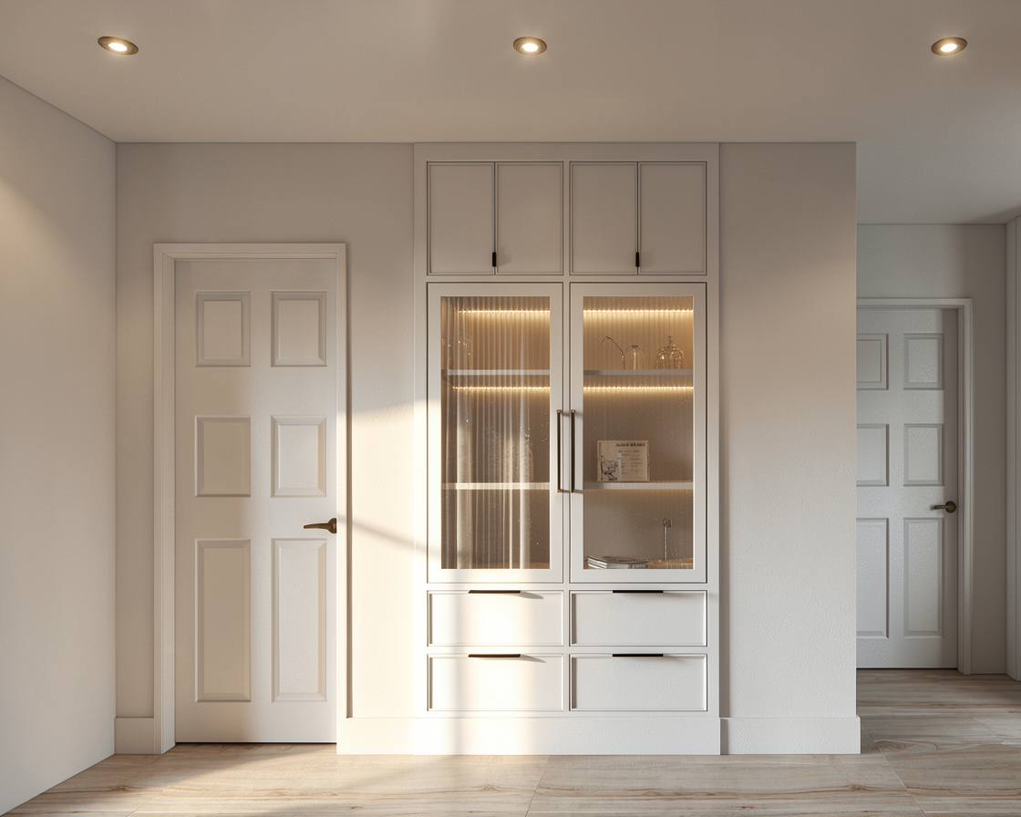 bedroom secondary angle create a photorealistic secondary bedroom view showing a different angle of the same bedroom in a 2 5 room apartment always based on the exact floor plan respect true room size openings and wall layout focus on a cozy and elegant corner composition with premium textiles warm neutral palette light oak flooring minimalist decor soft natural lighting and refined modern furniture the atmosphere should feel quiet upscale intimate and contemporary architectural visualization style realistic textures eye level perspective soft daylight premium residential mood