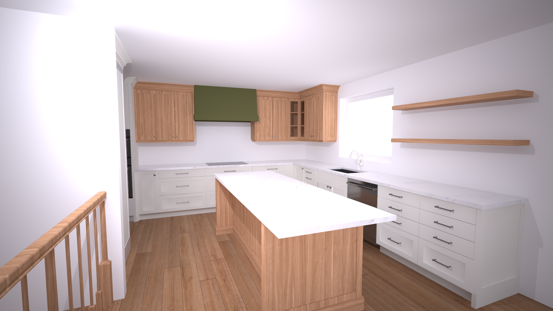 put subway tile as the backsplash all the way up to the ceiling behind the floating shelves