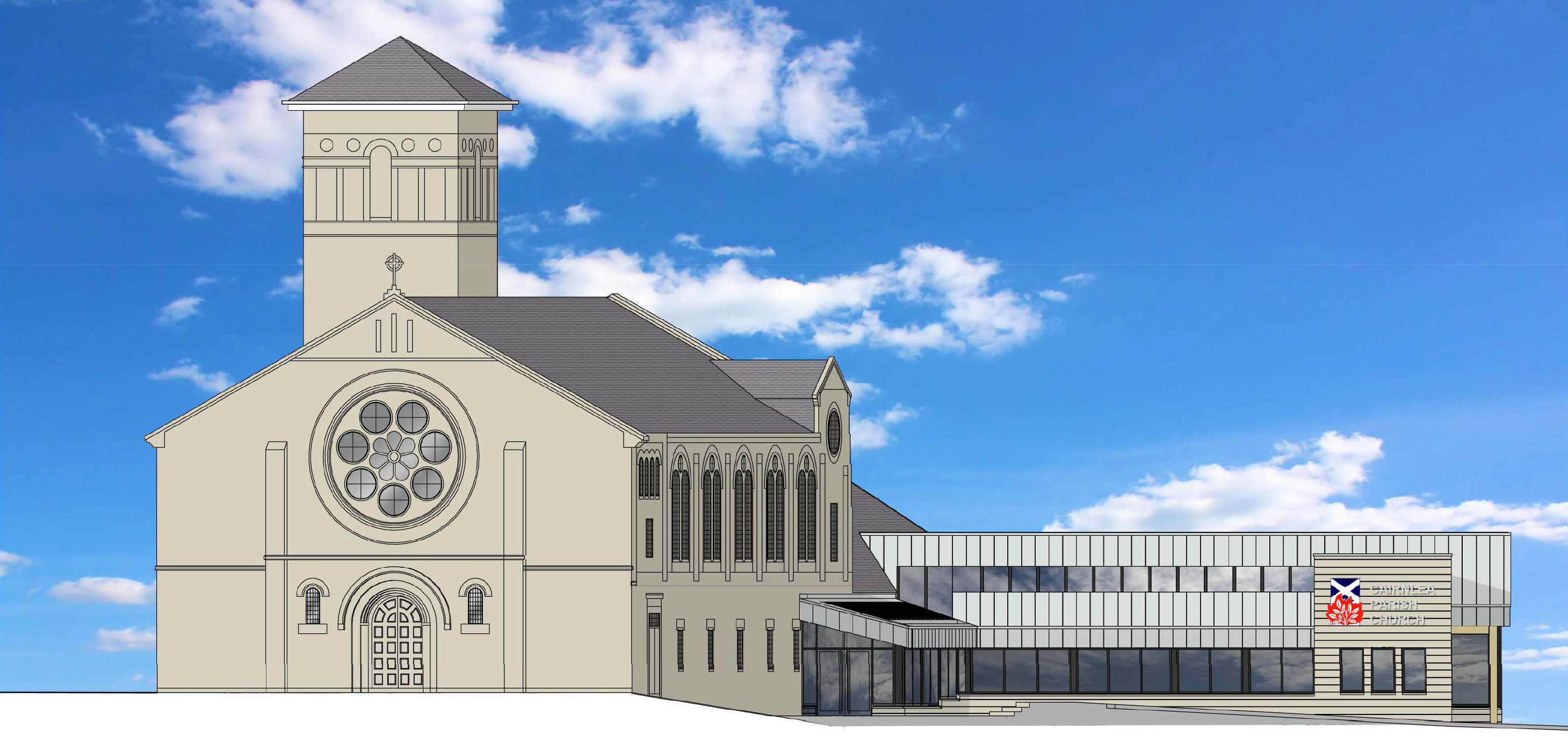 summers day stone church no trees in foreground car park in foreground photograph quality