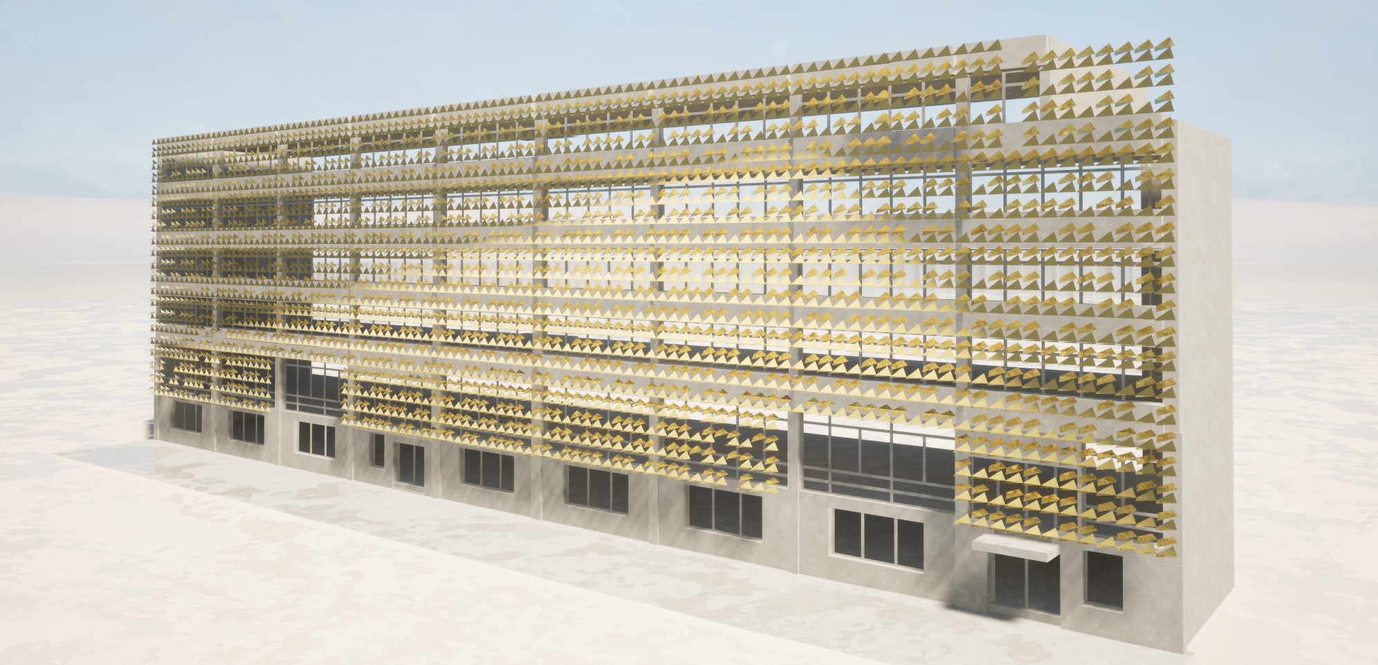 make his more realistic view of the phoenix art building in brighton with a solar kinetic facade skin