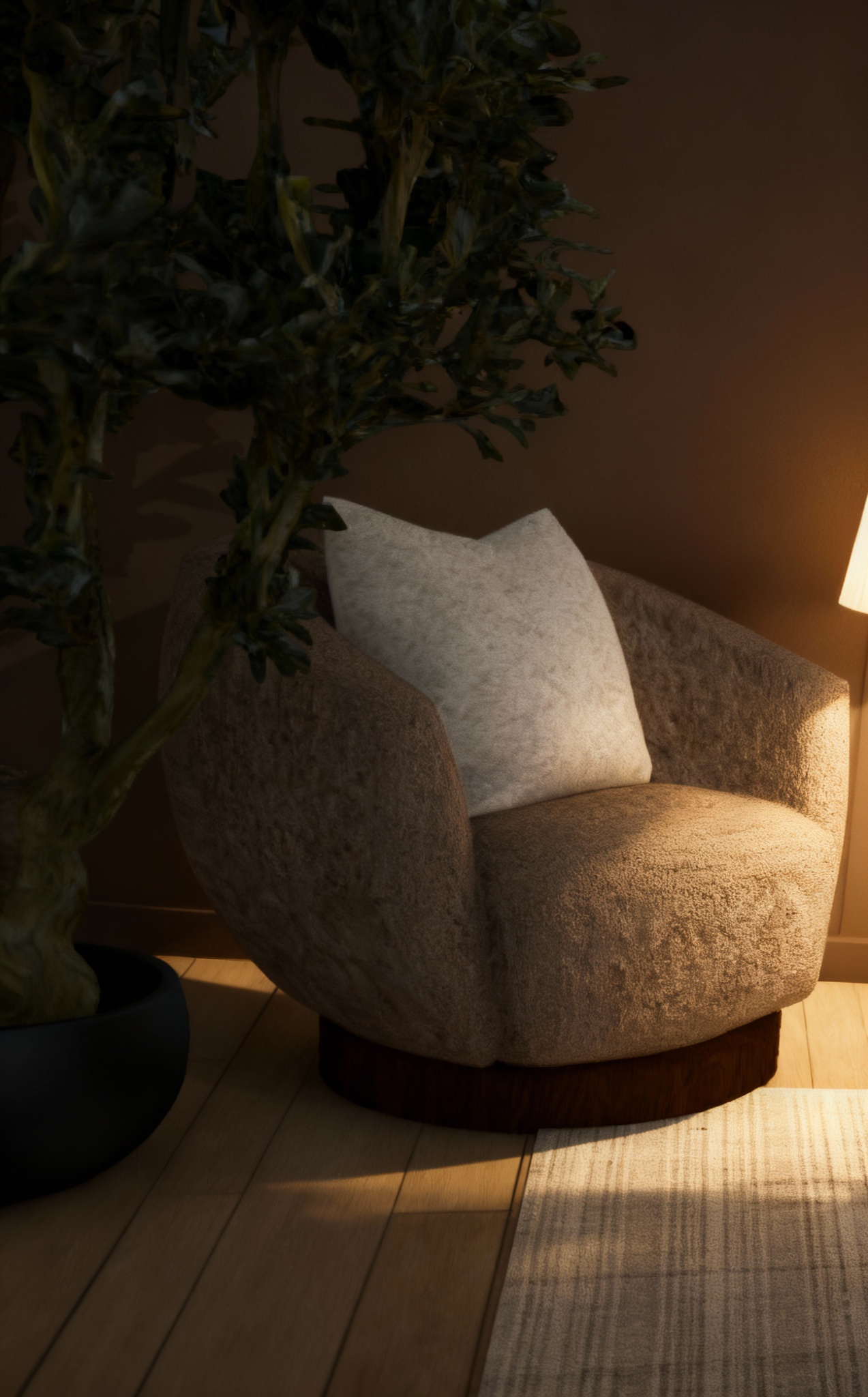 place only the items in the moodboard in a realistic room setting with the provide wall and trim paint color and wood flooring image should be high quality photorealistic for an interior design portfolio
