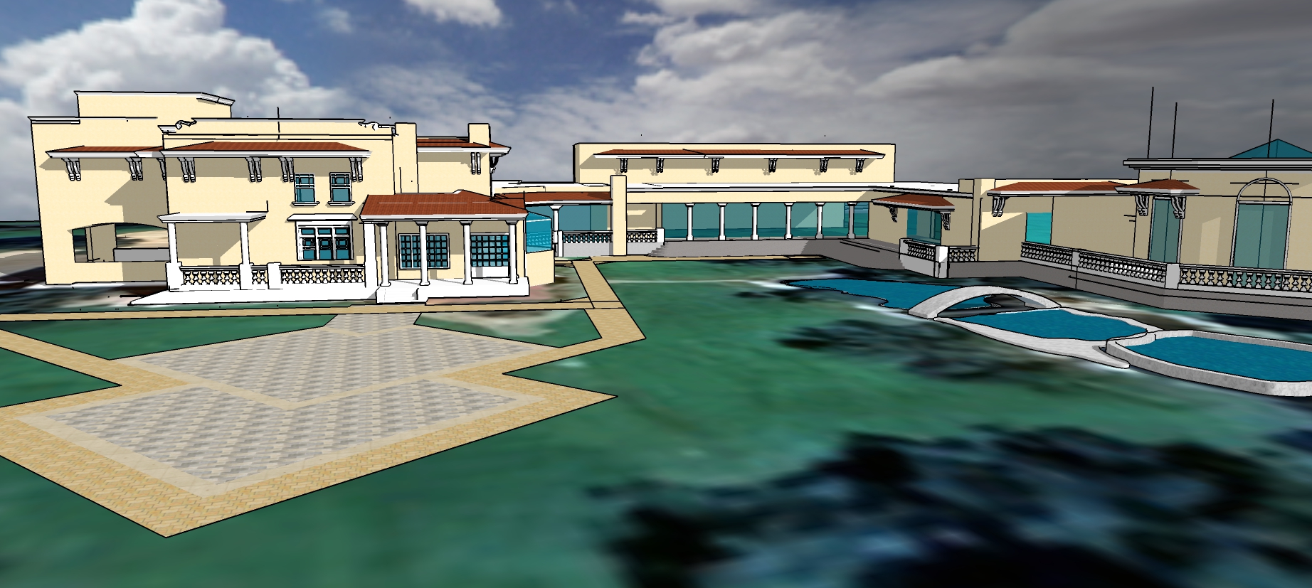 tiled patio english garden all grass