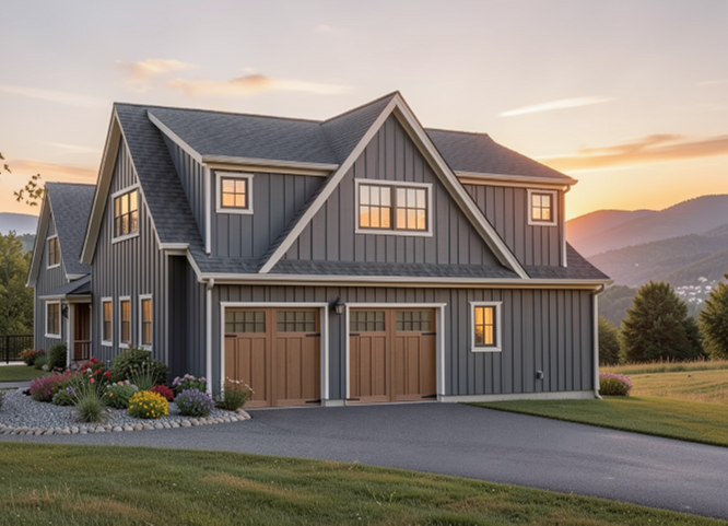 change siding to white horizontal siding make slope a little more steep downhill to the right