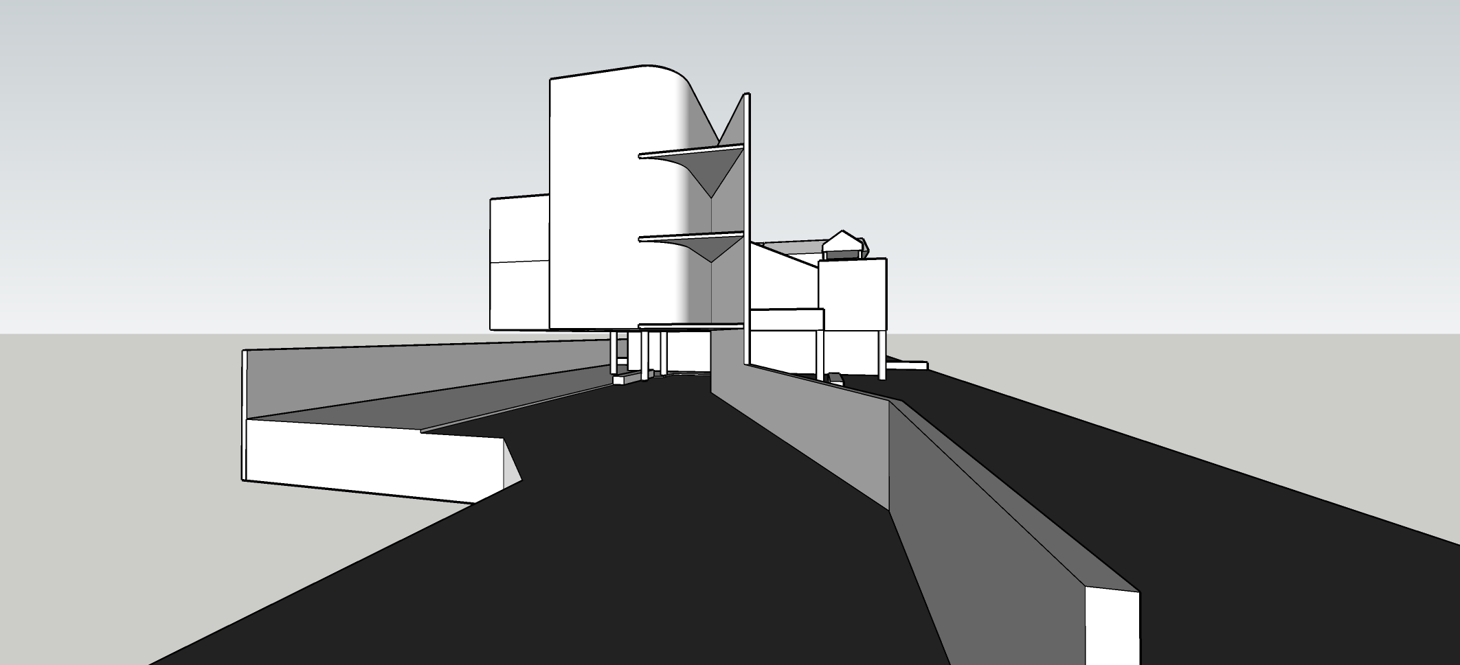 modern exterior shot hyper realistic exterior with curve wall and with natural lighting and clear modern interior with interior light nice and realistic garden with level 1 parking of nice cars architecture
