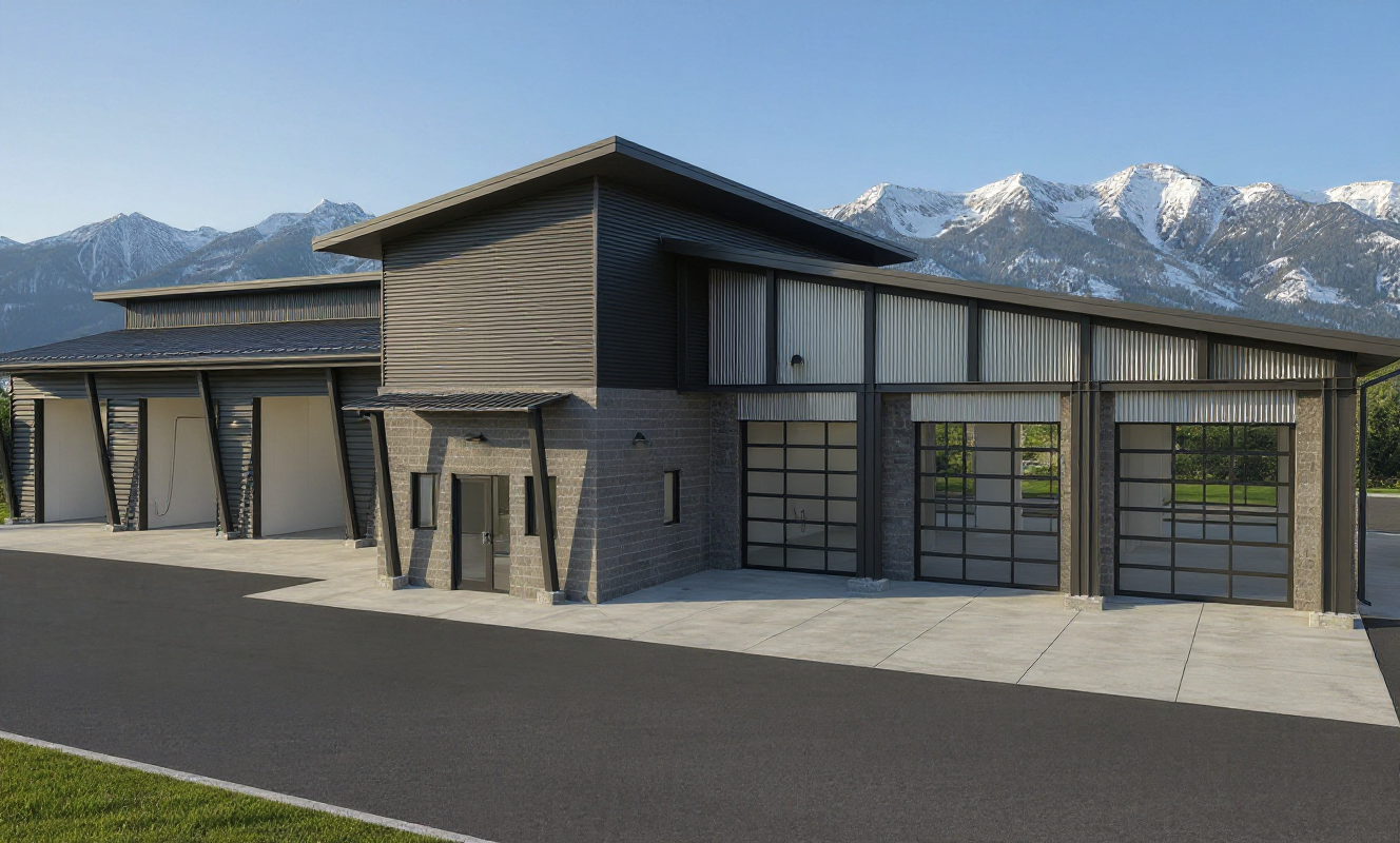 render a picturesque two story house with a charming rustic design the exterior walls are clad in elegant green horizontal siding accentuated by a classic black trim around the windows and doors the roof features a blue color seamlessly complementing the overall color scheme the balcony boasts a rich wooden hue contrasting beautifully against the gray siding with a sturdy black railing the foundation is adorned with a textured light gray finish set this house in a serene sunny environment with lush greenery surrounding the scene casting soft shadows and creating a warm inviting atmosphere