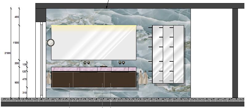 modernist interior shot view of the washbasin in 3d from the right washbasins are embedded in natural stone boffi ct line wall cabinets with mirror fronts architecture