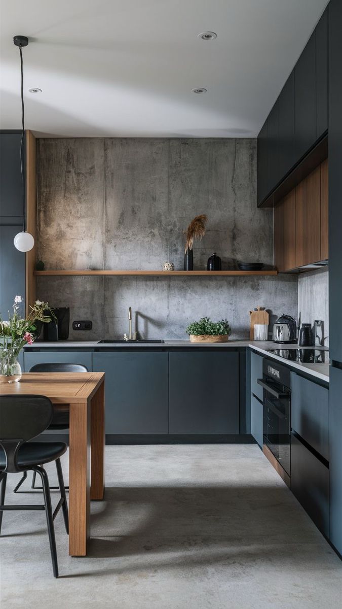 brutalism interior shot kitchen design dark marble and dark wood industrial style architecture