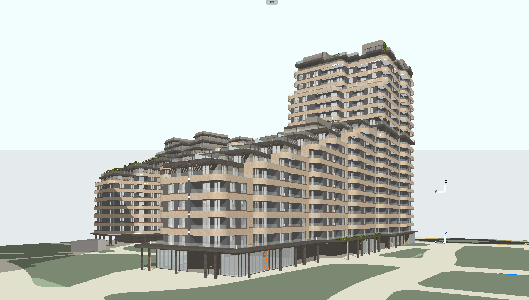 how photorealistic architectural photography low angle wide perspective using a 35mm lens deep depth of field ultra sharp professional real estate style capture emphasizing fa ade curvature and layered terraces what a multi level contemporary residential complex composed of stepped apartment volumes with smooth rounded balcony edges continuous glass balustrades horizontal brick cladding lush integrated planter boxes on every terrace a landscaped podium level with dark stone structural columns supporting the upper housing mass rooftop gardens and pergola seating areas where located on the edge of a newly developed suburban district with open green corridors surrounded by low density modern buildings and wide pedestrian paths positioned along a quiet street with native meadow landscaping and gently sloping terrain who style organic contemporary architecture with flowing horizontal massing soft modernist geometry biophilic residential design integrating vegetation into fa ade terraces when clear midday daylight with soft natural shadows and bright sky illumination light scattered clouds palette warm natural tones dominated by sandy beige brick charcoal stone podium base transparent glass railings fresh botanical greens neutral sky blues mood calm upscale livable environmentally integrated urban living atmosphere format 16 9 landscape composition street level viewpoint looking slightly upward toward the cascading residential tower architectural visualization framing additional ultra detailed surfaces physically accurate materials realistic reflections on glass crisp foliage detail 8k resolution emphasize balcony rhythm and layered terraces no vehicles minimal human presence