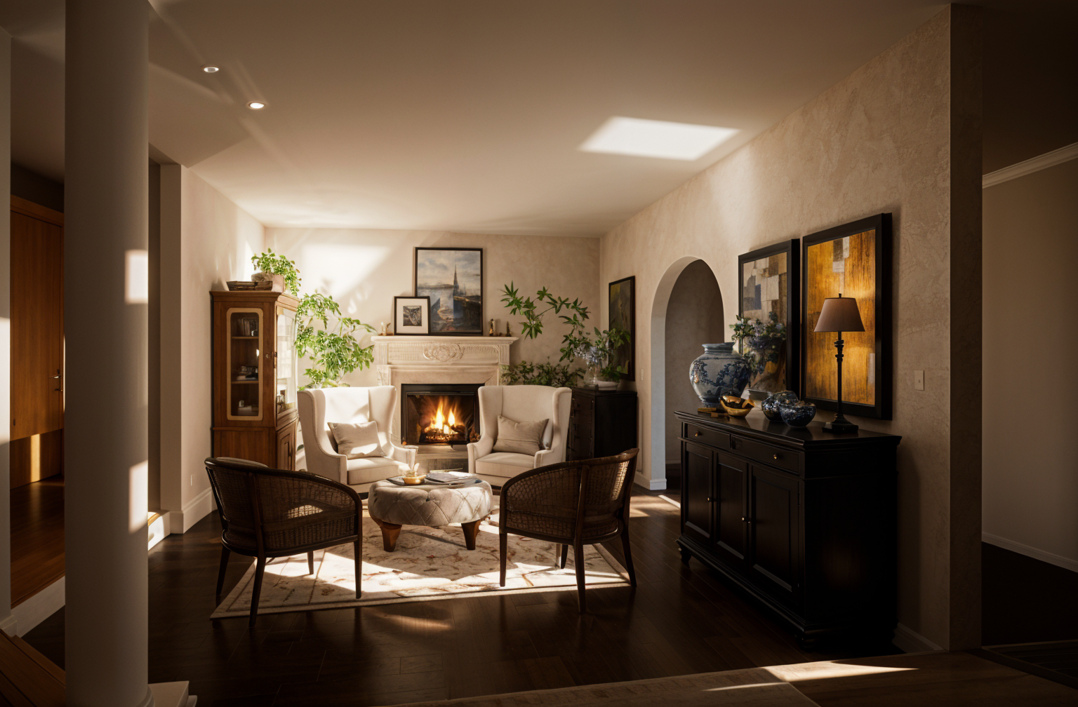 remove red color around windows add clouds to sky this facade should be lit by sunlight render style should be watercolor rendering with sketched outlines