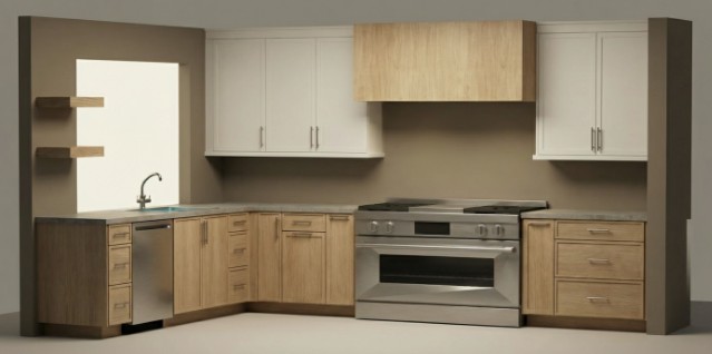 do not change the cabinets in any way preserve the exact cabinet colors materials finishes dimensions door and drawer styles hardware spacing alignment and all geometry exactly as shown do not alter the countertop shape backsplash appliances flooring lighting fixtures or wall structure only remove the construction materials clutter and mess from the scene clean the room and make it look finished and staged add a few simple tasteful home accessories appropriate for the style of the space but do not add or remove any furniture windows or architectural elements maintain the original lighting direction and realism enhance clarity and polish the photo while keeping the cabinetry and room design completely unchanged do not alter the lighting to keep the cabinet colors as they are in the image stage this kitchen add a view out the window but add a metal frame around the window add flooring