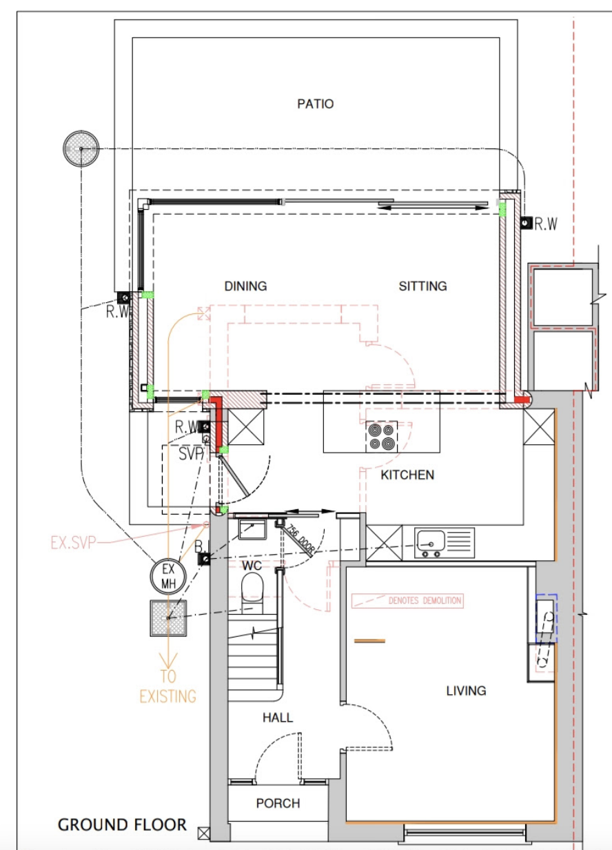 convert this floor plan into a realistic isometric 3d view of a full house show the space from an elevated angle with furniture walls and details visible add in a dining table near the dining section and remove the word dining make the frames on the sliding glass much thinner and bring them right to the top left edge of the corner of the house only two panels of glass remove the jack and jill boiler house on the right side and make the extension part move into that section move the fireplace in the front room into the corner nearest the chimney breast put carpet on the front living room also and remove the work living use the same furniture as shows on the plan do not change the orientation of the floorplan
