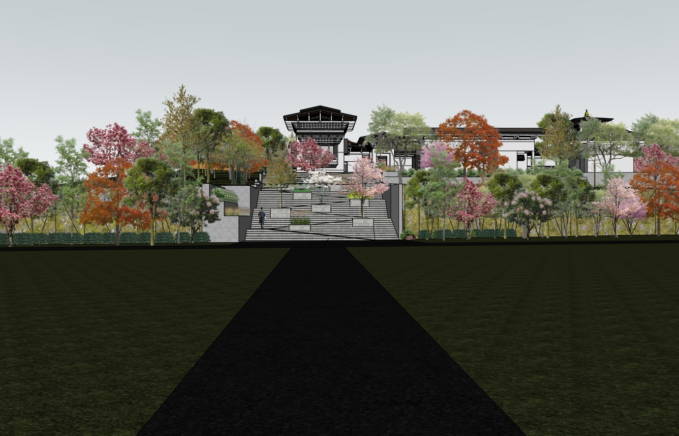 have a nice bhutan sky without mountain just sky the pink trees are peach blossom make it a bright cloudless day
