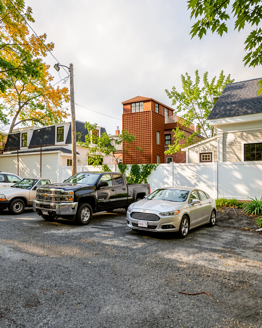 a sustainable building with thin and elegant vertical tensile planting with small leaves the thin vertical threads of planting crawl up between the wider spaced vertircal features found on the right side of the building there is no planting on the left side of the building starting from the middle
