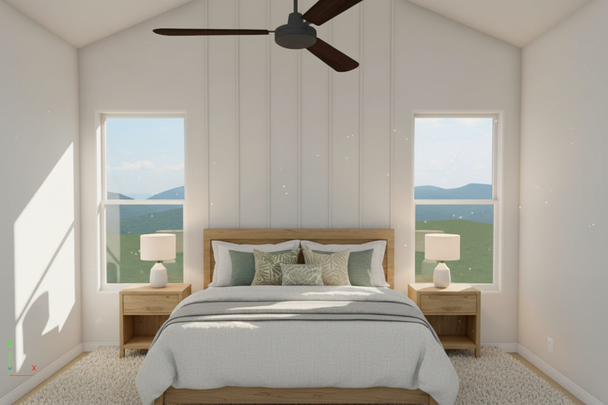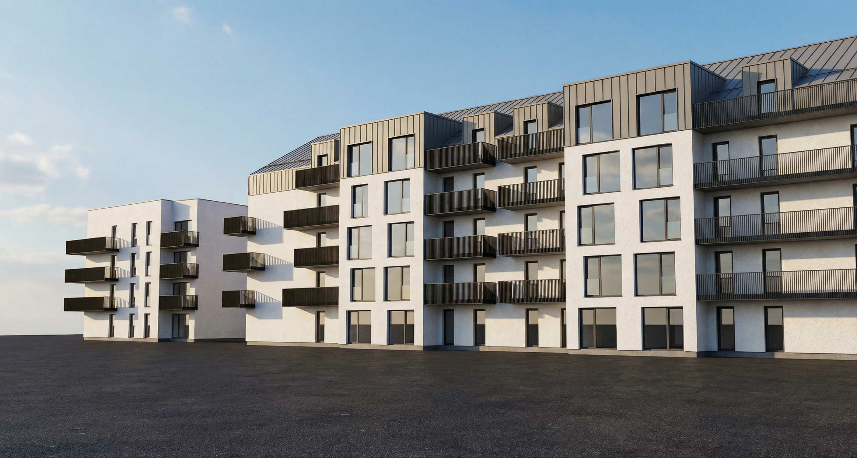 create a photorealistic architectural render that strictly follows the attached elevation drawing maintain exact proportions geometry and placement of all architectural elements do not redesign or reinterpret the facade produce a straight on orthographic view with no perspective distortion use realistic materials and lighting while preserving the original massing exactly