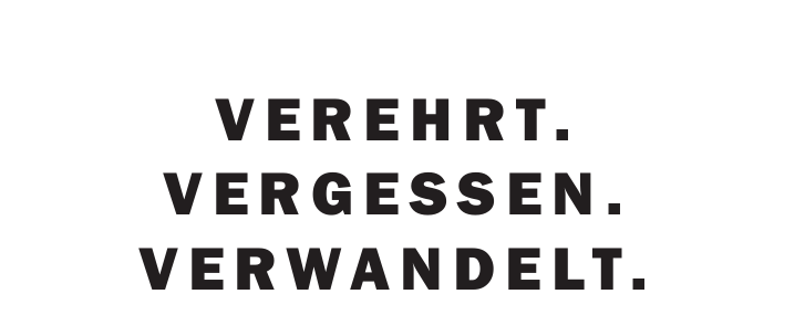 the word vergessen should look like gold and baroque style the word vergessen should look like a old broken wall with cracks and word verwandelt should look like zinc metal and wood like new construction