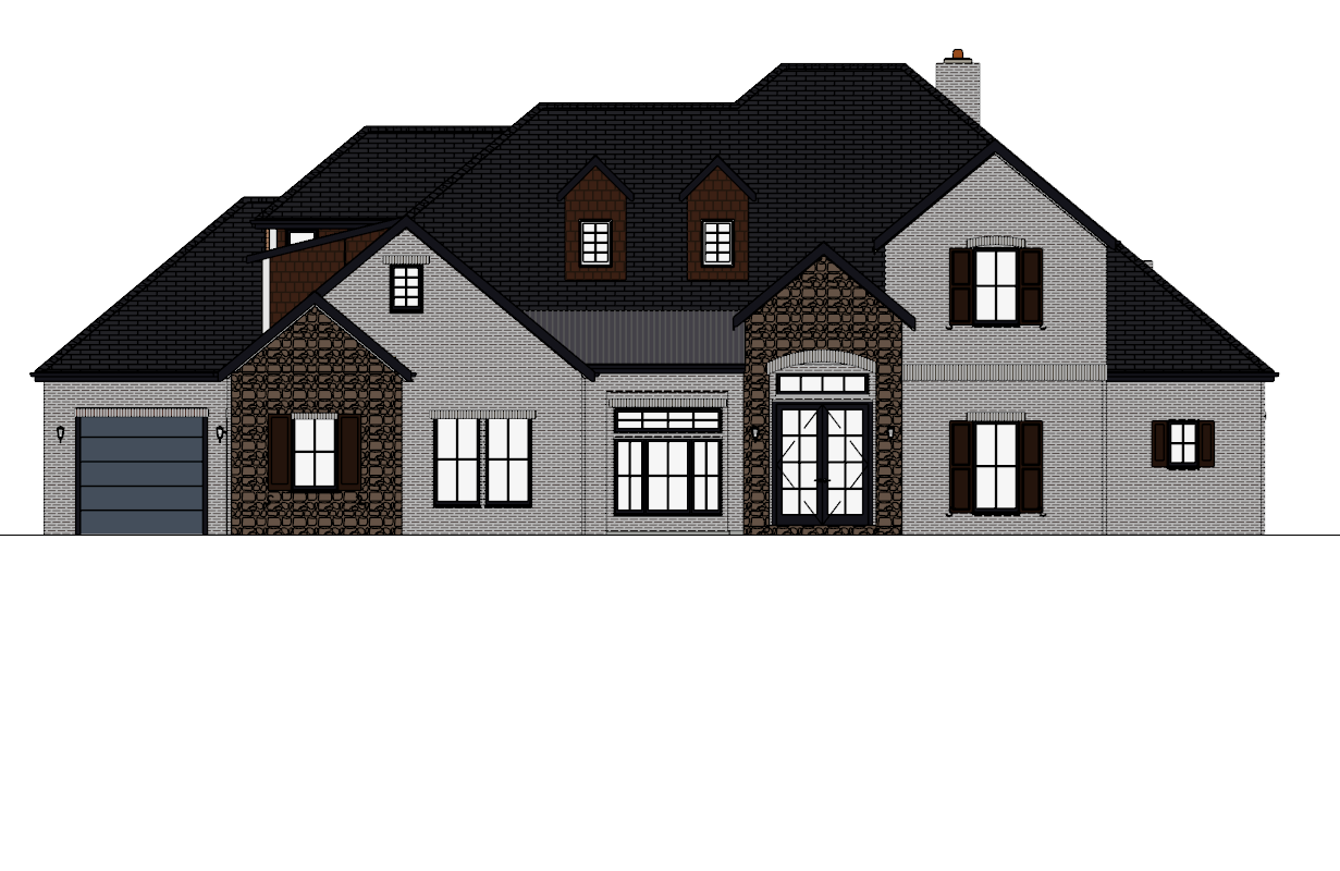 render the architectural elevation in a soft minimalist watercolor sketch style use warm desaturated beige and cream tones paired with thin clean black linework for windows edges and architectural details incorporate subtle pencil like edge strokes and delicate shading to achieve an elegant hand drawn feel surround the building with loose airy botanical elements lightly sketched trees and shrubs in muted greens and browns with a semi transparent hand painted quality maintain a bright white background with low contrast for a calm natural aesthetic the exterior materials should be clearly represented with visible texture brick as the primary material stacked stone as an accent and thatched wood siding as an additional accent material show the brick pattern stacked stone texture and the organic woven character of the thatched wood siding using soft watercolor washes and refined linework detailed yet gentle match the lighting tones and mood of the reference image the overall look should remain modern artistic and precise blending architectural accuracy with soft illustration textures