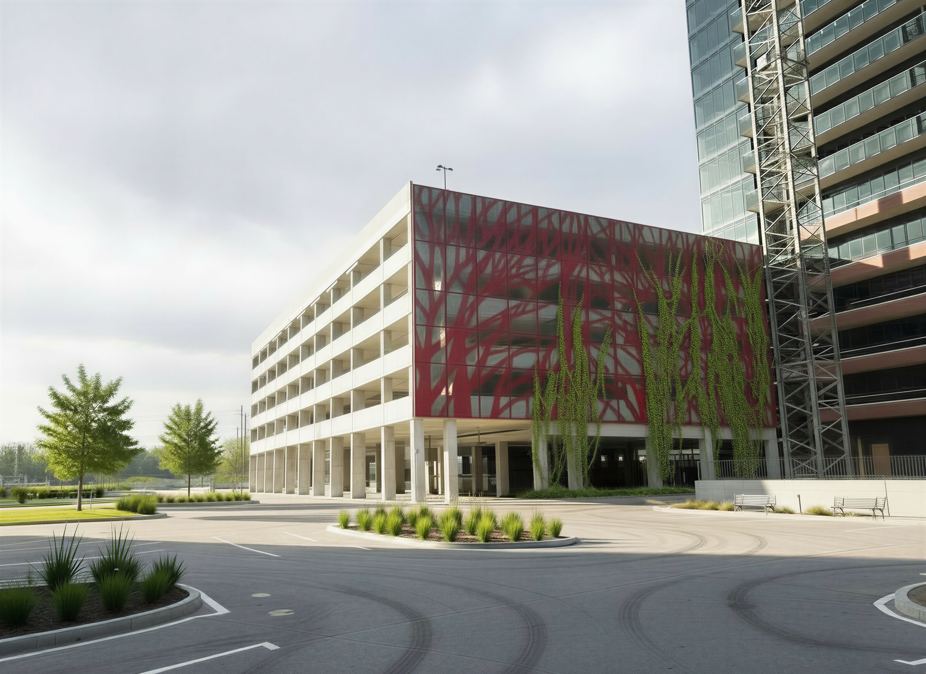 add thin black planter box on the 1 side of the building across the entire side