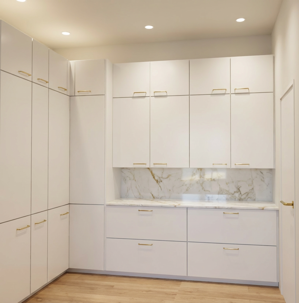 this is a real photo of a small modern kitchen with green cabinets a dining table and a washing machine on the left preserve the exact layout camera angle and architecture aadd some decorative items for kitchen improve styling in a subtle realistic way keep the green kitchen cabinets exactly as they are maintain natural daylight from the window keep the dining table and chairs unchanged just aligned them to be straight integrate it visually so it blends naturally with the surrounding furnitureenhance lighting to be soft warm and natural with gentle sunlight coming from the window slightly improve textures and colors while keeping everything realistic do not change layout or structure add new furniture redesign the kitchen alter cabinet colors or positions the final image should look like a clean professionally photographed airbnb kitchen natural and realistic