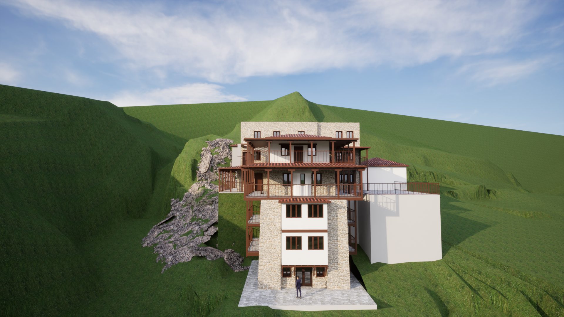 make it realistic add vegetation from mount athos halkidiki greece