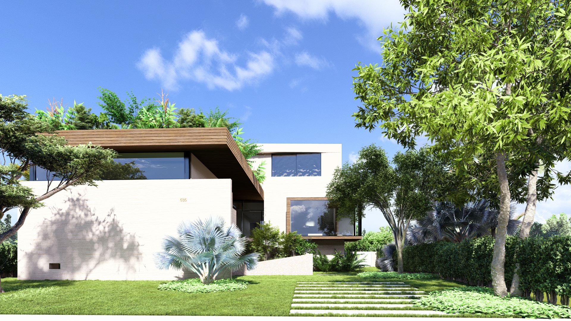 modernist exterior shot all materials with very high texture and the whole image is very hyper realistic keep the same materials architecture